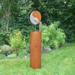 Die Skulpturen sind Unikate. Sie können sowohl im Garten als auch im Innenbereich aufgestellt werden. In einer lichtvollen Ecke platziert, kann sich im Morgen- und Abendlicht ein Spiel von Licht und Schatten entfalten. Da die Skulpturen auf einem Dorn auf dem Sockel aufgesetzt sind, können Sie sie vorsichtig drehen, um sie aus den unterschiedlichen Blickwinkeln zu betrachten, ohne den Sockel bewegen zu müssen. Die Skulpturen sind für den Außenbereich imprägniert – wir empfehlen, sie dennoch über den Winter nach Drinnen zu stellen.